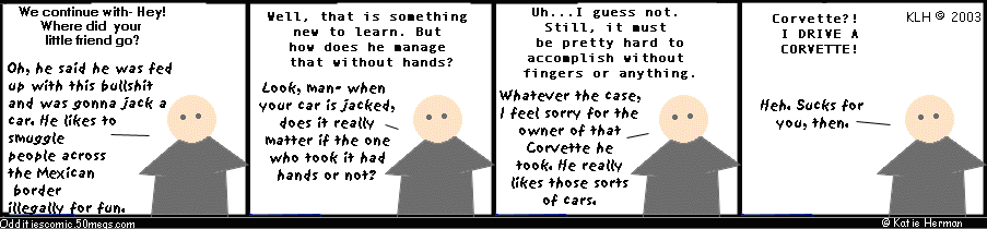 I'm gonna pretend I come up with these comics on a daily basis, 7 days a week, and that I'm not a lazy person. Therefore, previous comics will be displayed in groups of seven. Enjoy.