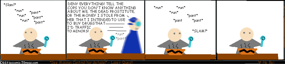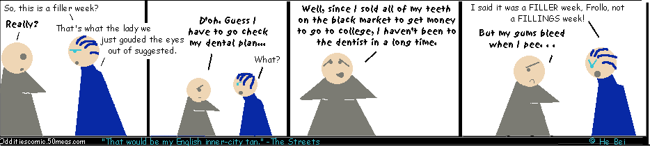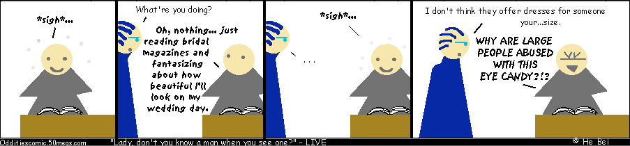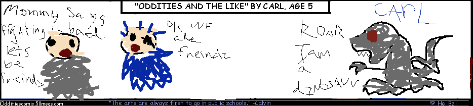 Try as I may, I can't seem to be around all the time to draw "Oddities and the Like". During this time, a brave few may come forward and offer their skillz. I say a "brave few" because most people seem to be afraid of my comic, so I don't actually get alot of offers for guest comics. Therefore, those who do come forward must be brave. Or something.